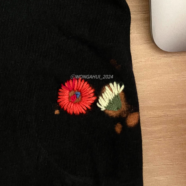 엄마 덕분에 망개꽃 스킬을 얻었고, 나는 이제 내 맘대로 그려서 나머지 온갖 셔츠와 천가방에 수를 놓을 작정이다.