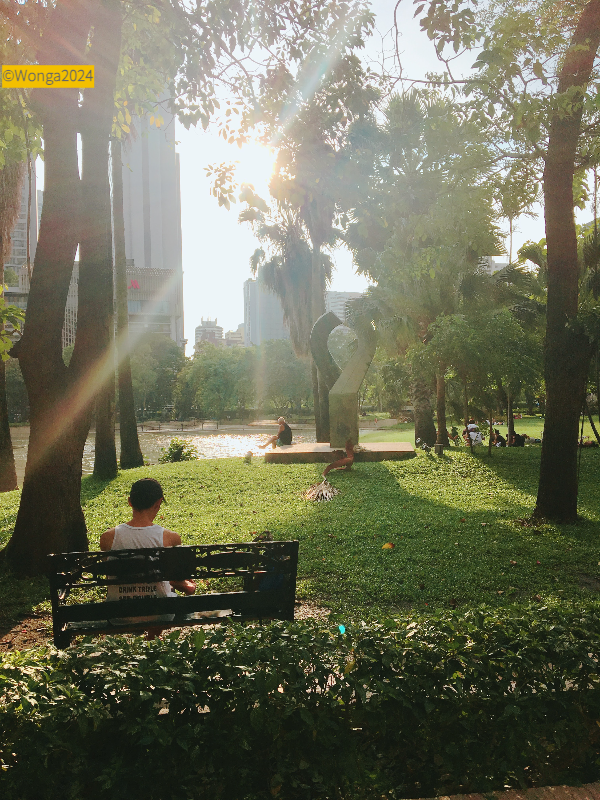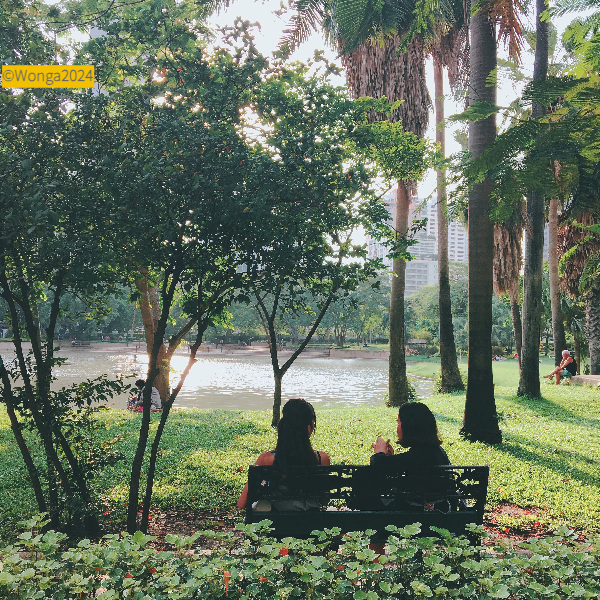 조용조용 공원 소리를 넘지 않게 이야기하거나, 새소리와 같이 울리는 아이의 웃음소리, 가만히 윤슬을 지켜보는 사람의 고요함에 나도 꽤 오래 앉아있게됐지. 방콕에서 가장 좋았던 곳이 어디야? 하고 물으면 첫 장에 떠오르는 곳이 이 공원이야.