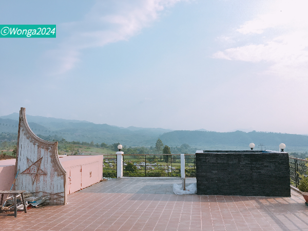 옥상에 올라 시포 풍경을 내려봤어. 멋진 시골에 온 기분에 어린 시절 여름방학을 떠올렸어.