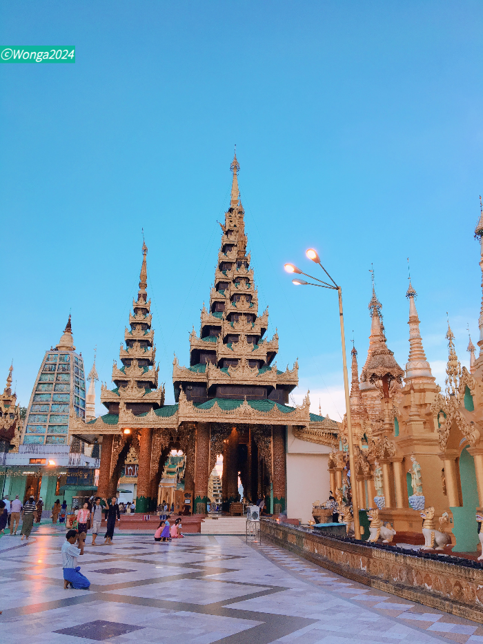 밤이 되면 더욱 빛난다는 쉐다곤파고다를 마주하자니 그의 용모?에 압도당했어.
